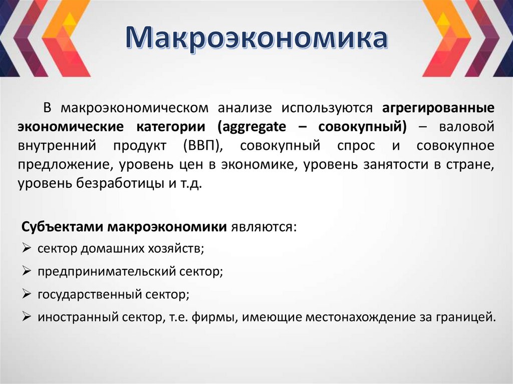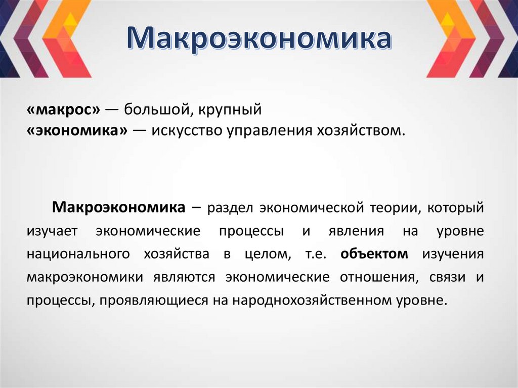 «макрос» — большой, крупный«экономика» — искусство управления хозяйством.
