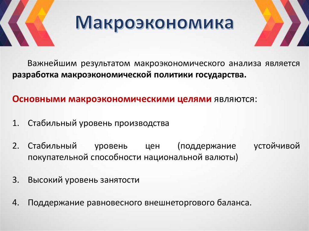 Важнейшим результатом макроэкономического анализа являетсяразработка макроэкономической политики государства.