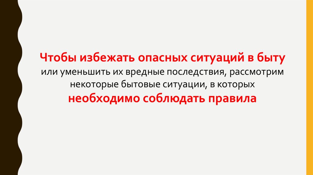 Чтобы избежать опасных ситуаций в бытуили уменьшить их вредные последствия, рассмотрим