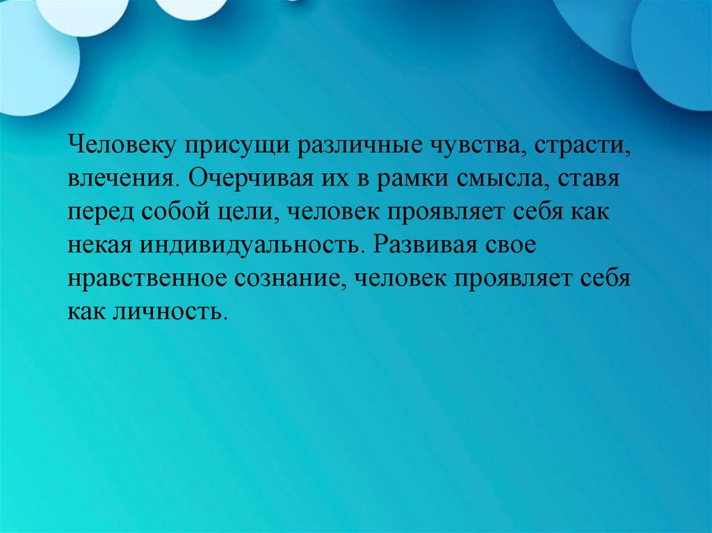 Человеку присущи различные чувства, страсти,влечения. Очерчивая их в рамки смысла, ставя