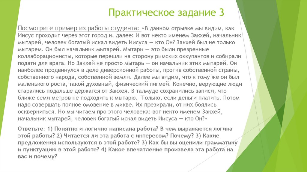 Практическое задание 3Посмотрите пример из работы студента: «В данном отрывке мы видим, как
