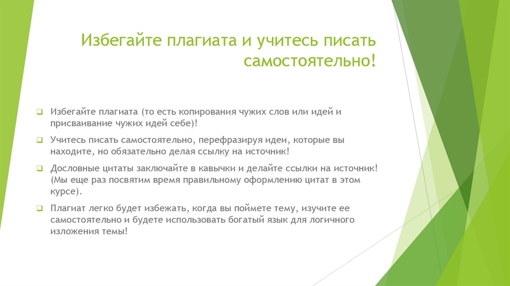 Избегайте плагиата и учитесь писатьсамостоятельно!
