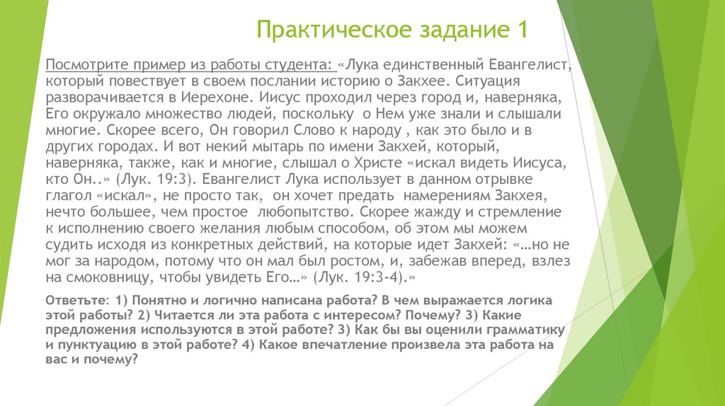 Практическое задание 1Посмотрите пример из работы студента: «Лука единственный Евангелист,
