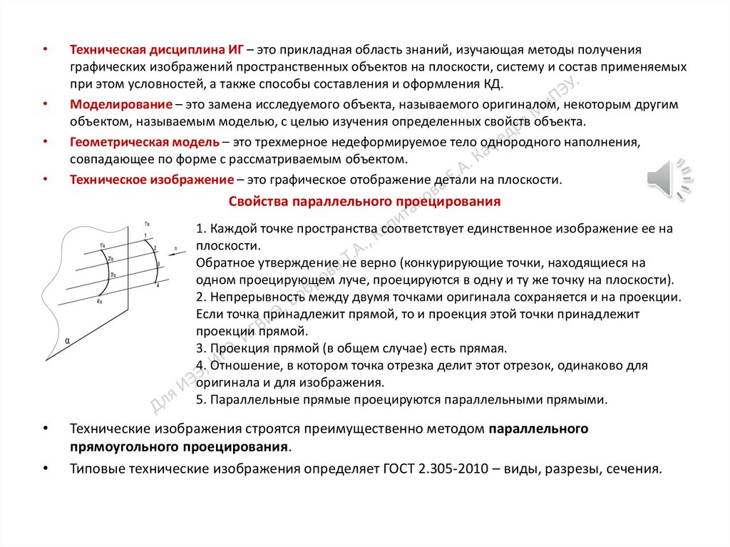 графических изображений пространственных объектов на плоскости, систему и состав применяемых