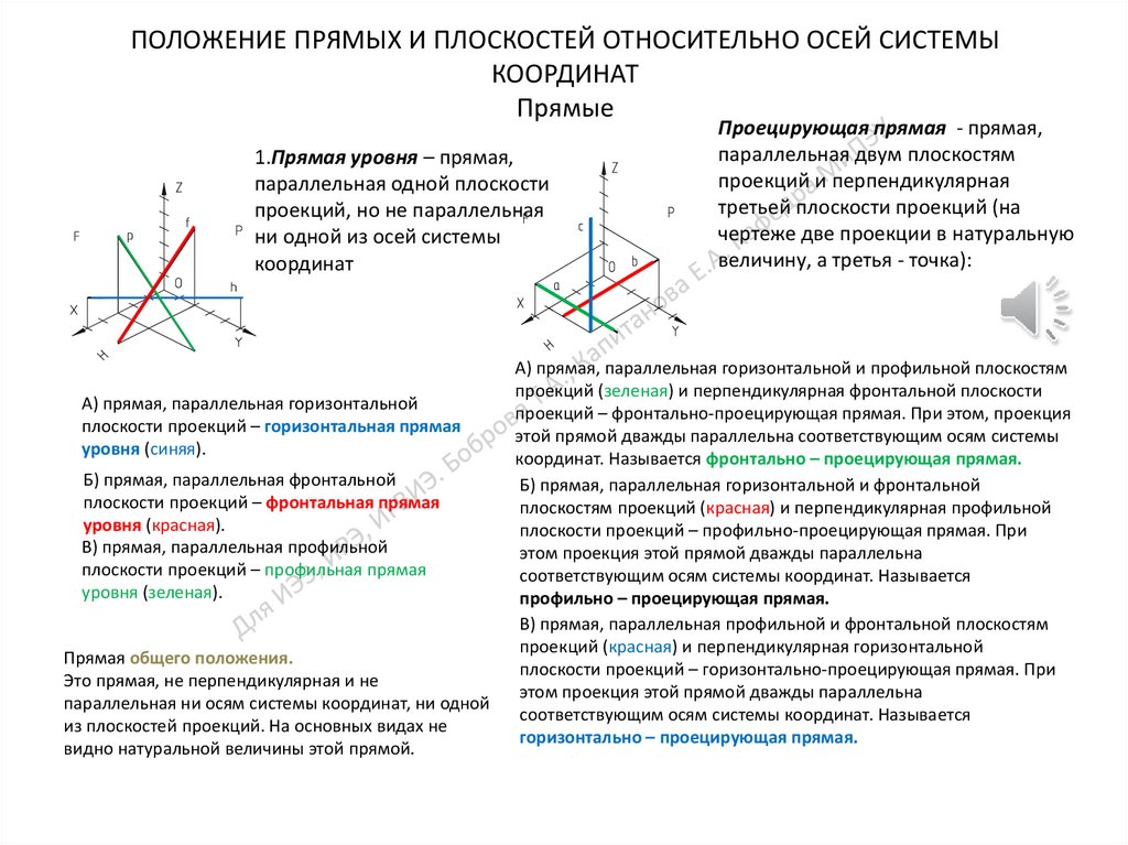 ПОЛОЖЕНИЕ ПРЯМЫХ И ПЛОСКОСТЕЙ ОТНОСИТЕЛЬНО ОСЕЙ СИСТЕМЫКООРДИНАТ