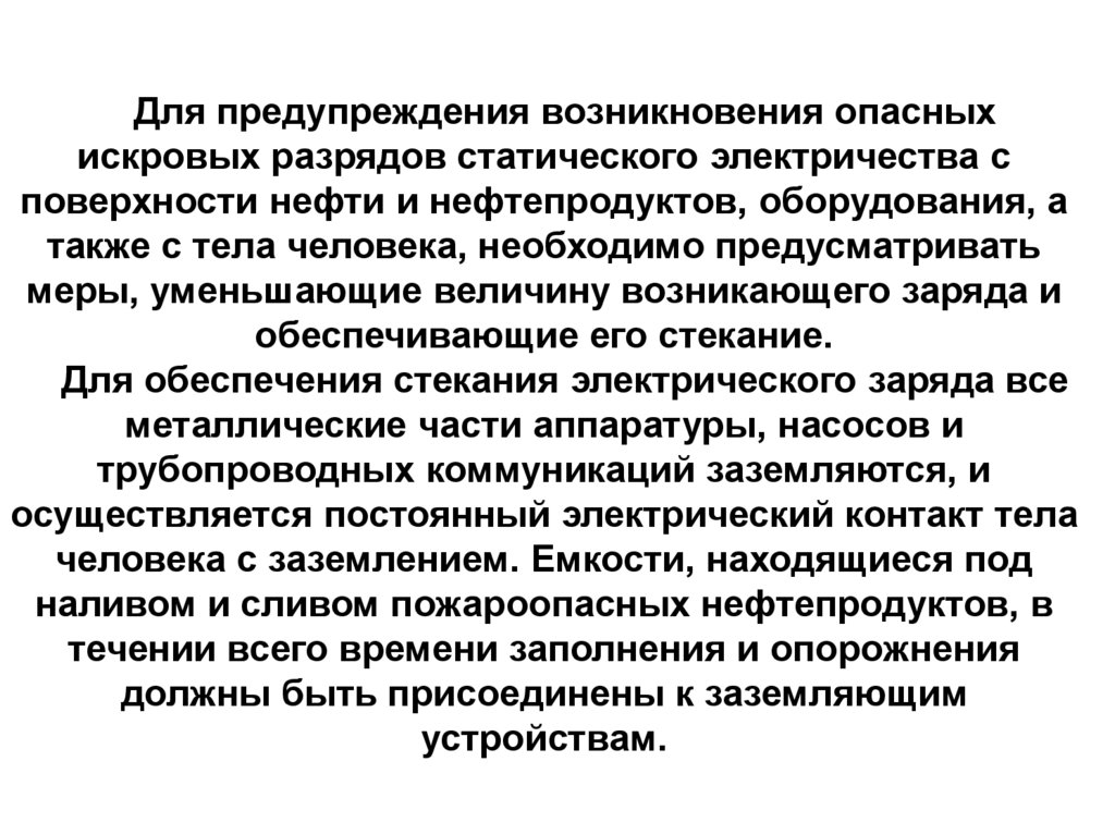 Для предупреждения возникновения опасныхискровых разрядов статического электричества с