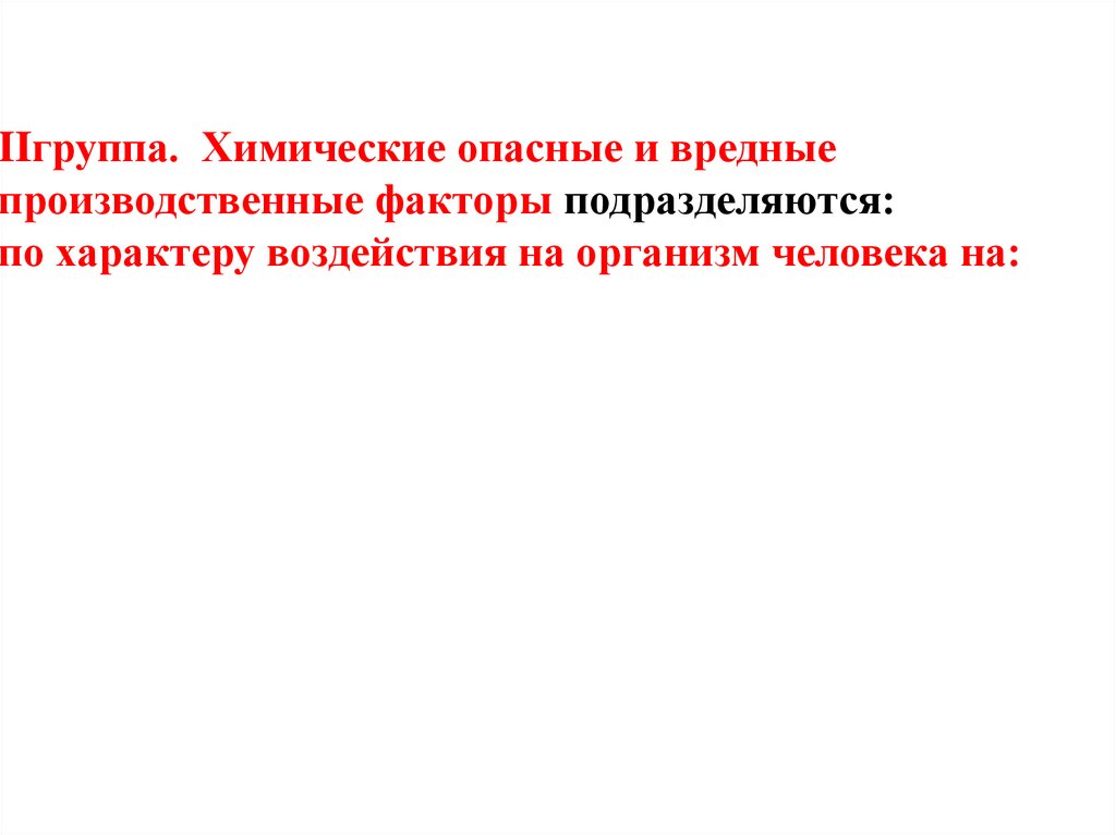 IIгруппа. Химические опасные и вредныепроизводственные факторы подразделяются: