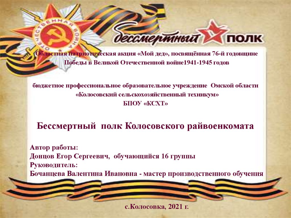Областная патриотическая акция «Мой дед», посвящённая 76-й годовщинеПобеды в Великой Отечественной войне1941-1945 годов