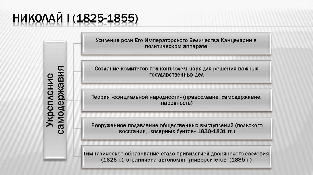 (1828 г.), ограничена автономия университетов (1835 г.)