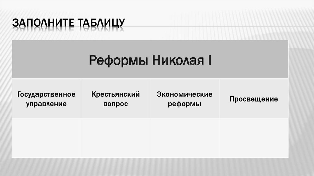 ЗАПОЛНИТЕ ТАБЛИЦУРеформы Николая I