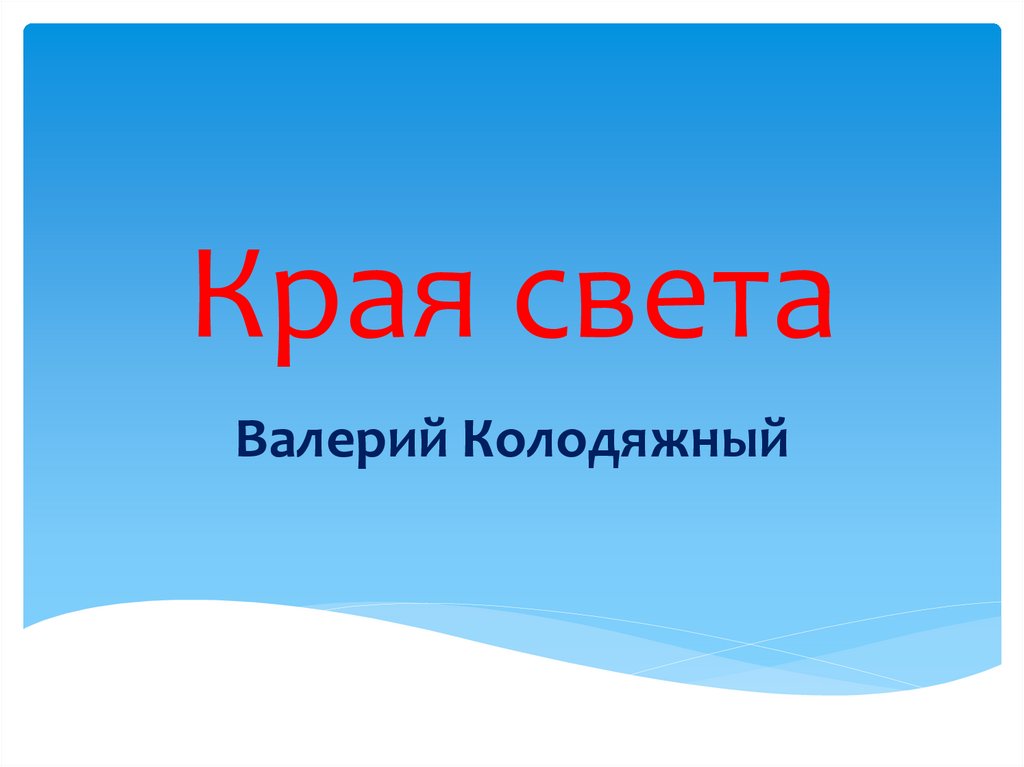 «Края света». Подарок из Африки. Валерий Колодяжный