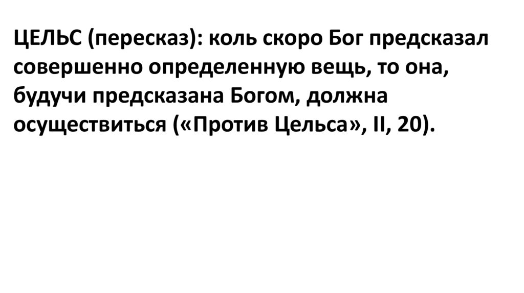 ЦЕЛЬС (пересказ): коль скоро Бог предсказалсовершенно определенную вещь, то она,
