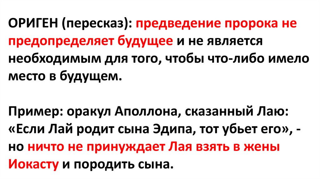 ОРИГЕН (пересказ): предведение пророка непредопределяет будущее и не является