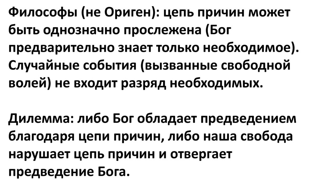 Философы (не Ориген): цепь причин можетбыть однозначно прослежена (Бог