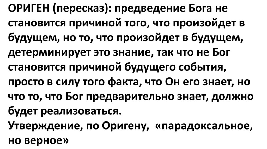 ОРИГЕН (пересказ): предведение Бога нестановится причиной того, что произойдет в