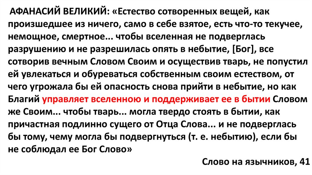 АФАНАСИЙ ВЕЛИКИЙ: «Естество сотворенных вещей, какпроизшедшее из ничего, само в себе взятое, есть что-то текучее,