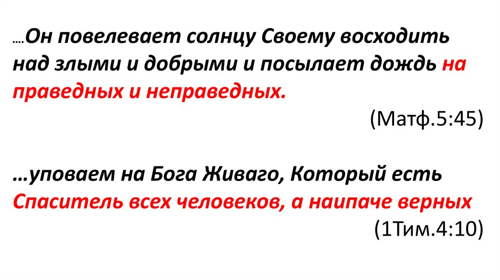 Он повелевает солнцу Своему восходитьнад злыми и добрыми и посылает дождь на