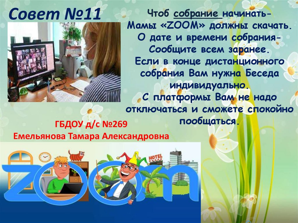 Чтоб собрание начинатьМамы «ZOOM» должны скачать.О дате и времени собранияСообщите всем заранее.