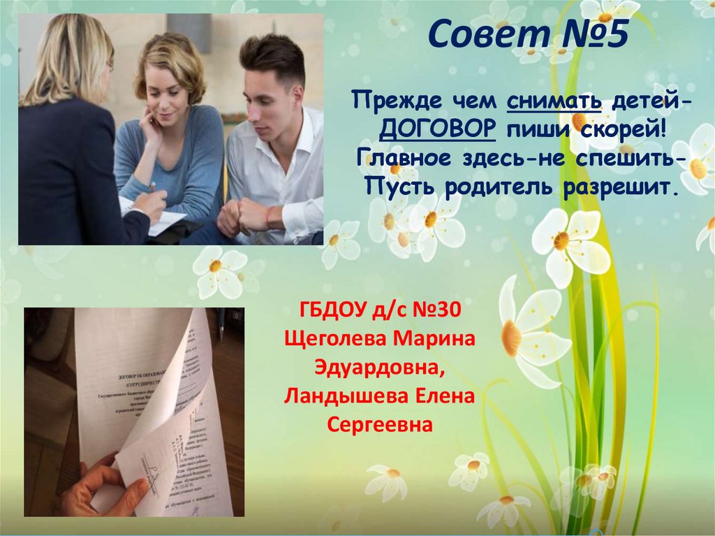 Совет №5Прежде чем снимать детейДОГОВОР пиши скорей!