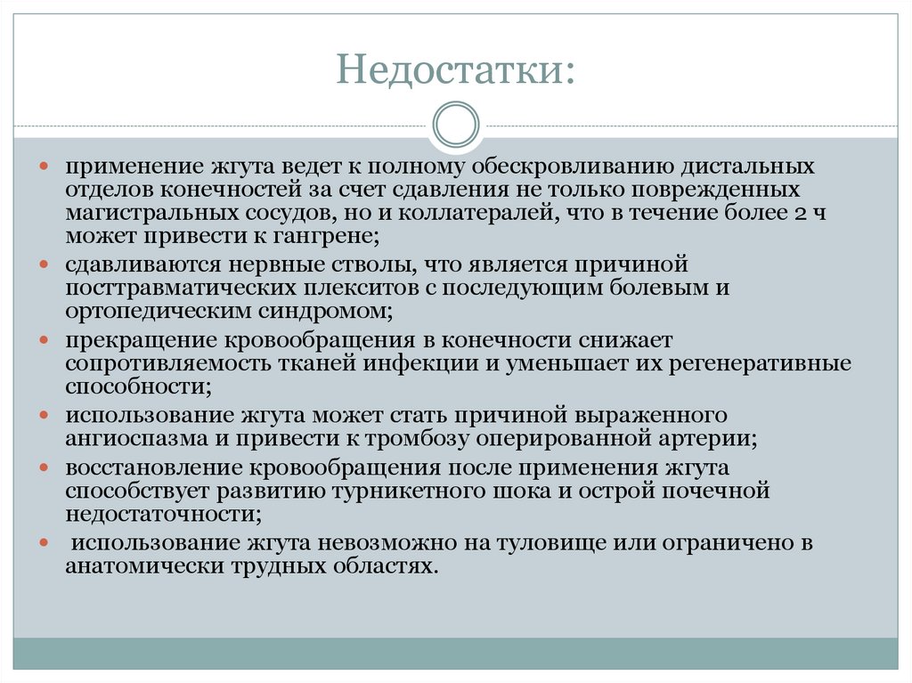 Недостатки:применение жгута ведет к полному обескровливанию дистальных