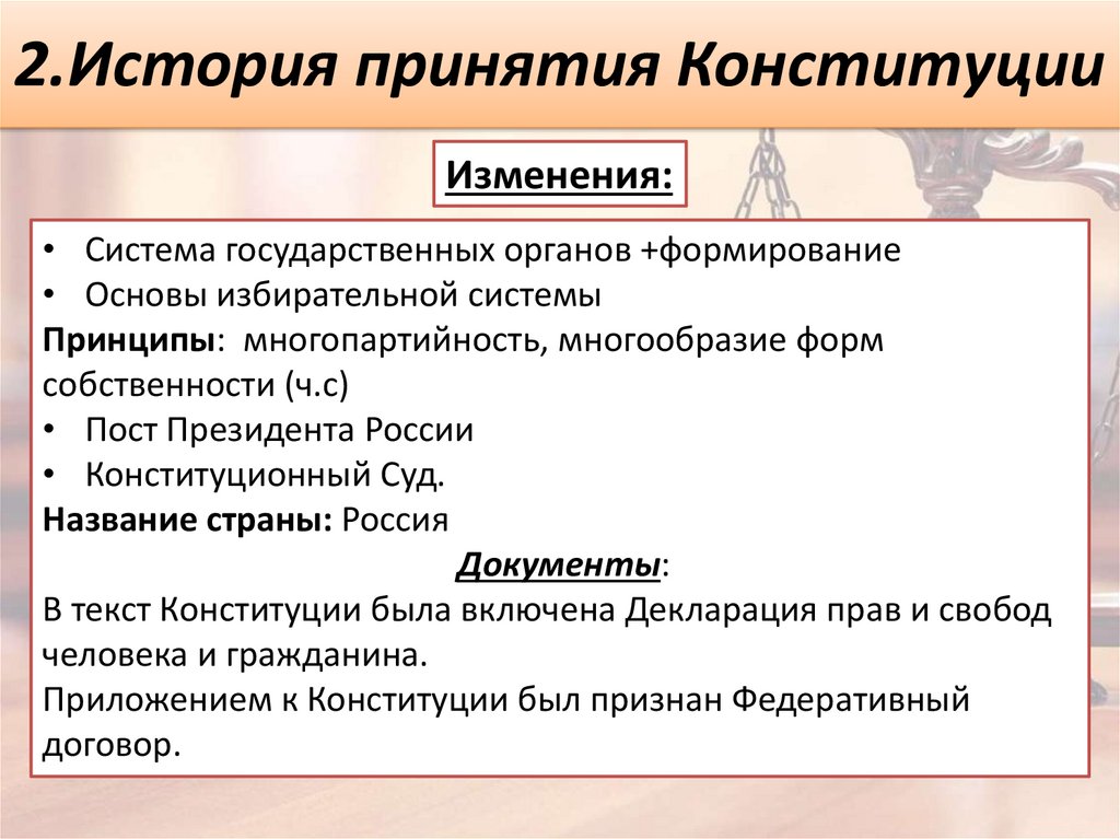 История принятия и общая характеристика Конституции Российской Федерации. Тема18