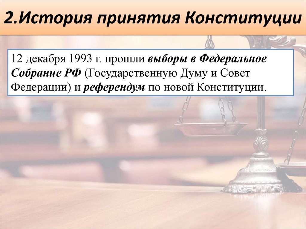 2.История принятия Конституции12 декабря 1993 г. прошли выборы в Федеральное