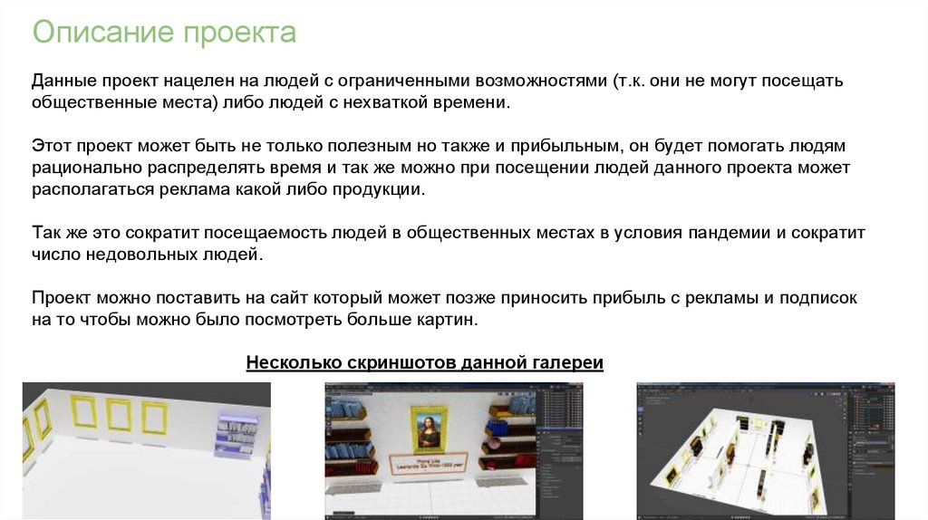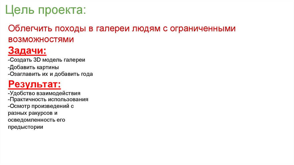 Цель проекта:Облегчить походы в галереи людям с ограниченными