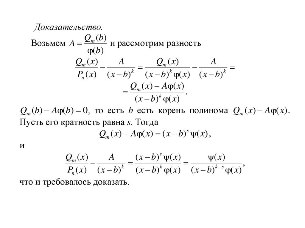 Qm (b) A (b) 0 , то есть b есть корень полинома Qm ( x) A ( x) .