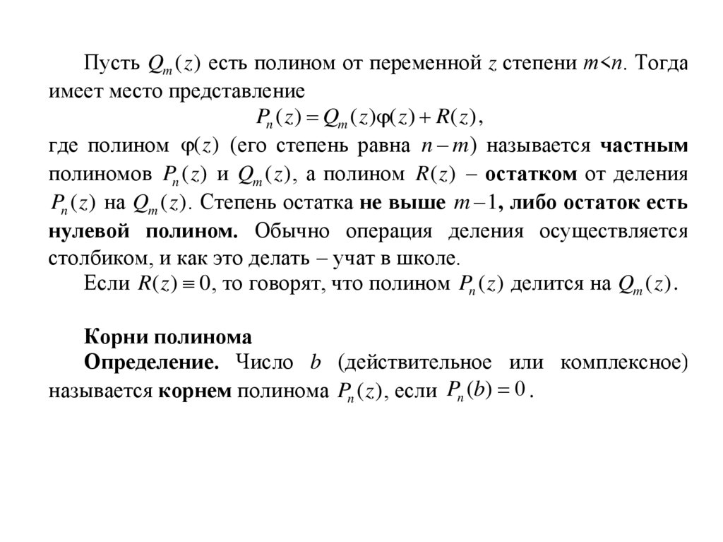 Pn (z ) на Qm (z ) . Степень остатка не выше m 1, либо остаток есть