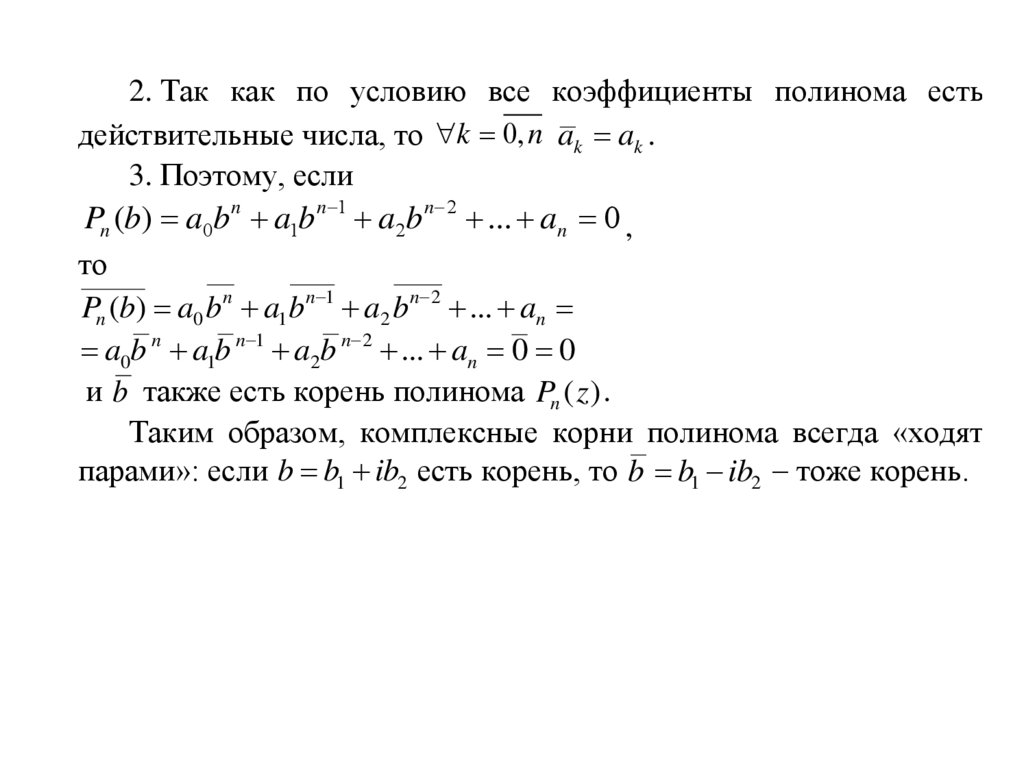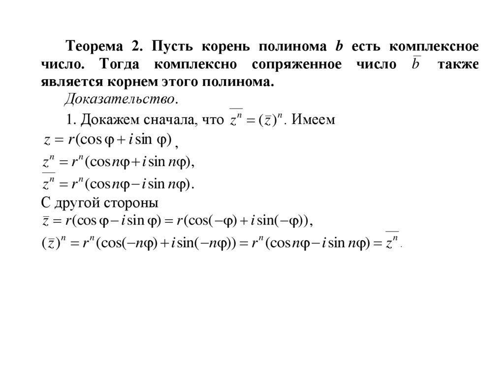 Теорема 2. Пусть корень полинома b есть комплексноечисло. Тогда комплексно сопряженное число b также