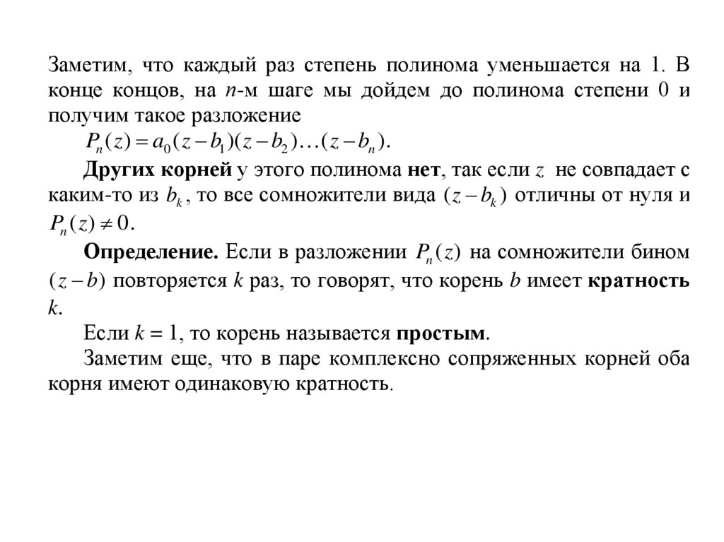 ( z b) повторяется k раз, то говорят, что корень b имеет кратность