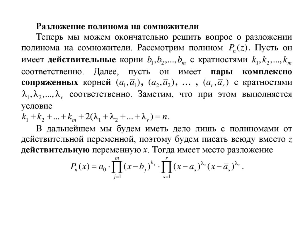 Разложение полинома на сомножителиТеперь мы можем окончательно решить вопрос о разложении