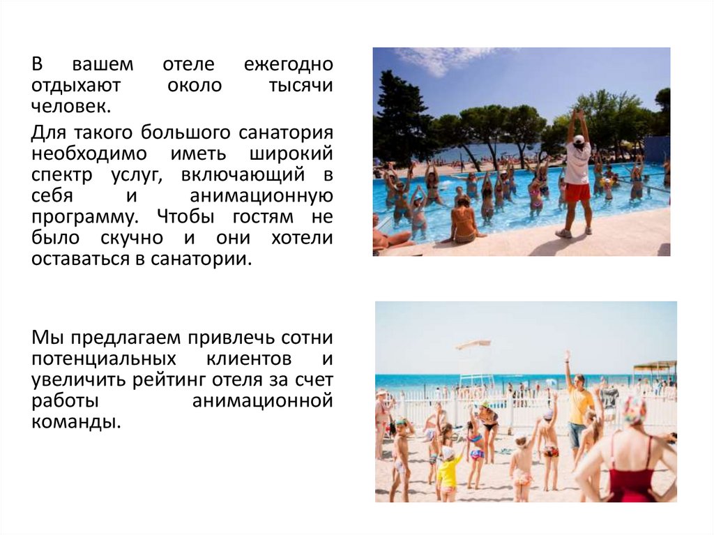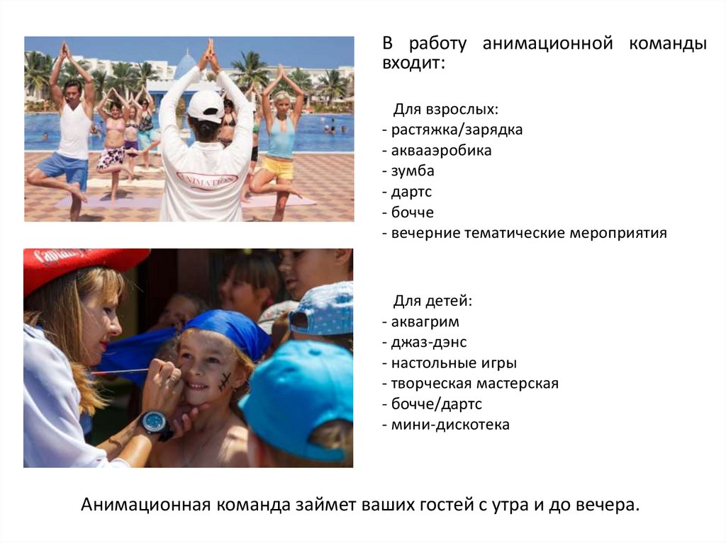 Анимационная команда займет ваших гостей с утра и до вечера.