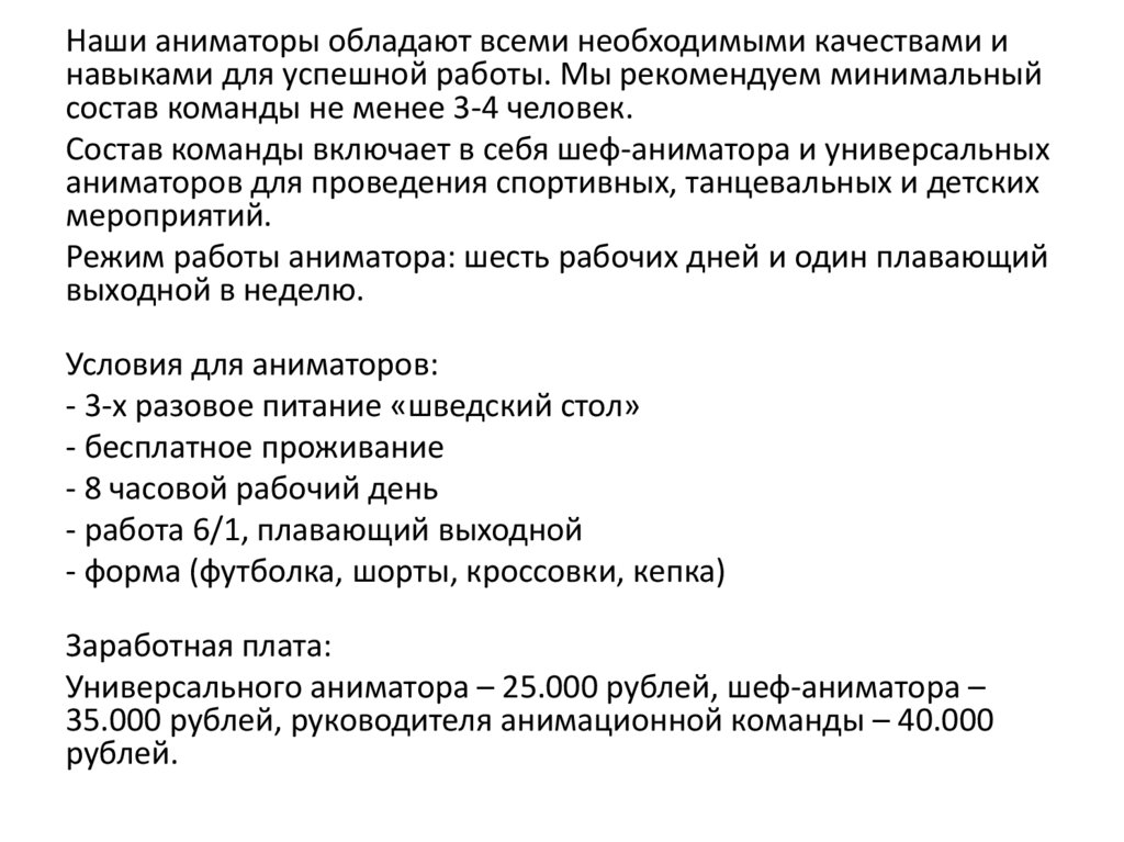 Универсального аниматора – 25.000 рублей, шеф-аниматора –
