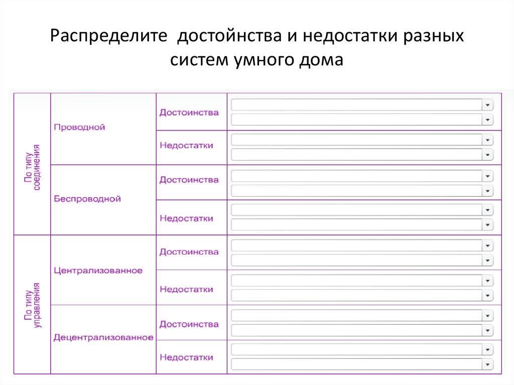 Распределите достойнства и недостатки разных