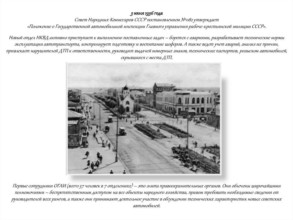 Первые сотрудники ОГАИ (всего 57 человек в 7 отделениях) – это элита правоохранительных органов. Они облечены широчайшими