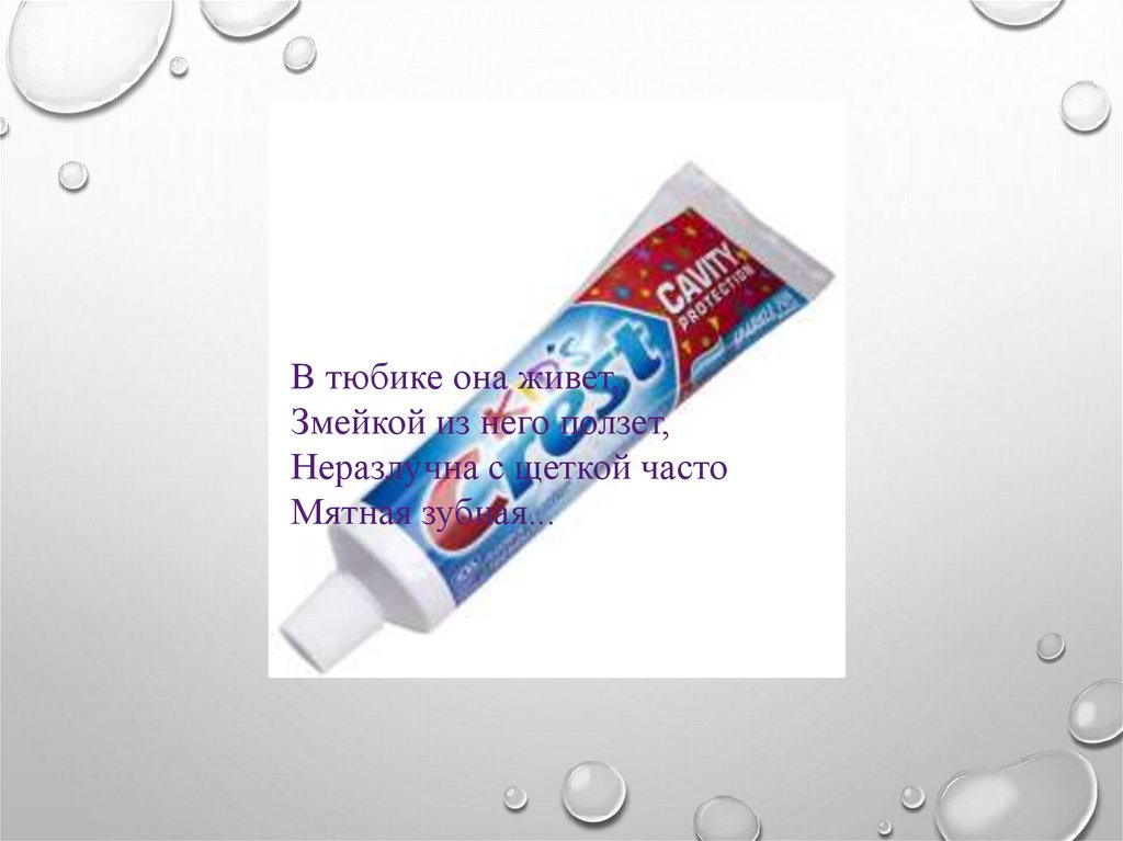 В тюбике она живет,Змейкой из него ползет,