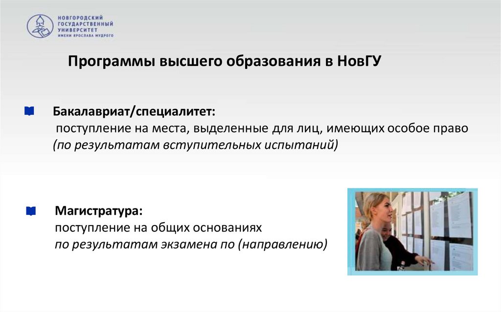 Программы высшего образования в НовГУБакалавриат/специалитет: