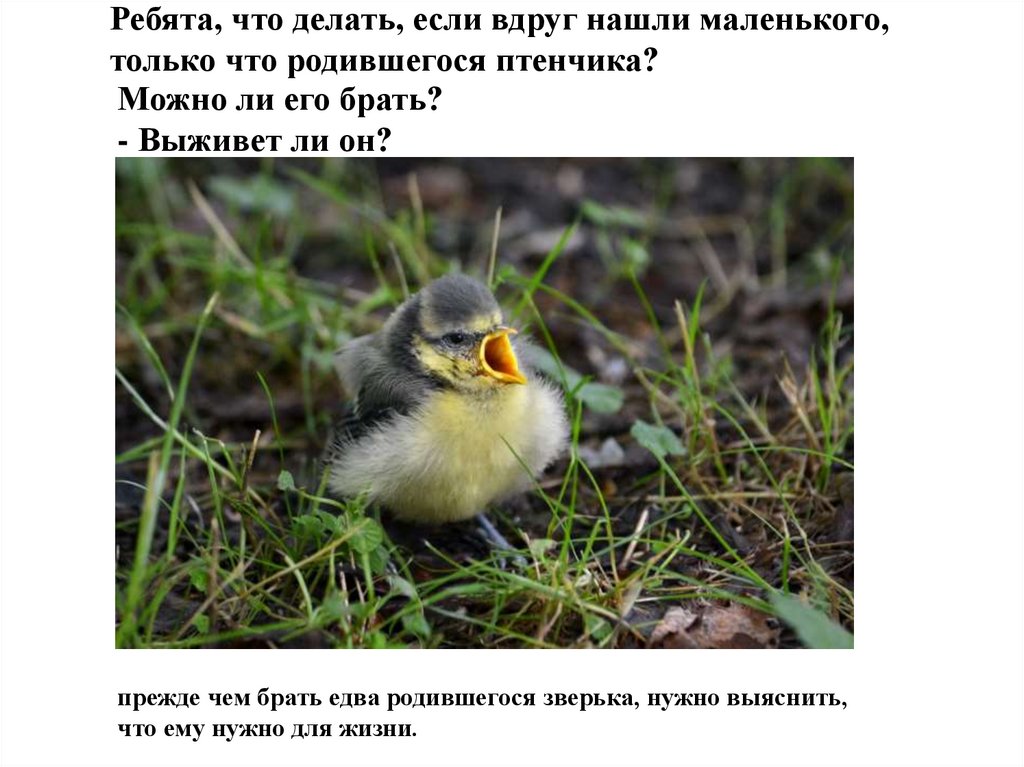 Ребята, что делать, если вдруг нашли маленького,только что родившегося птенчика?