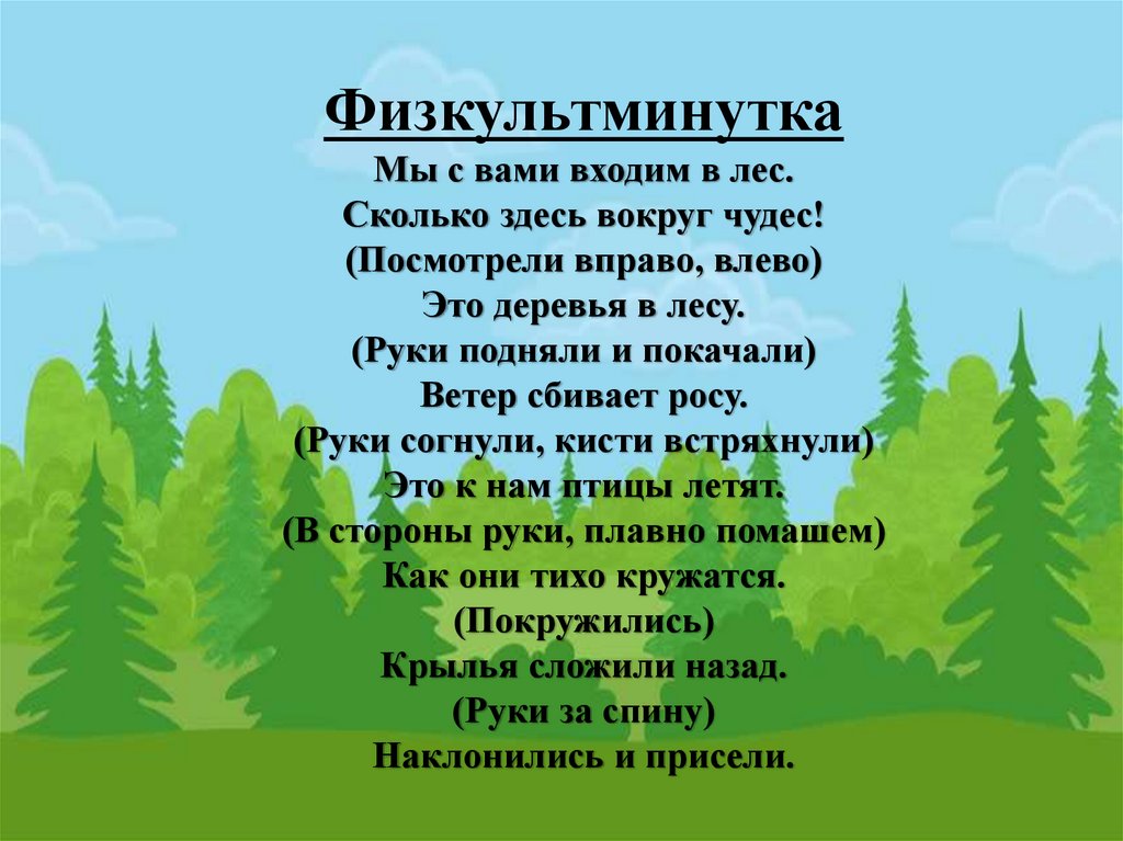 ФизкультминуткаМы с вами входим в лес.