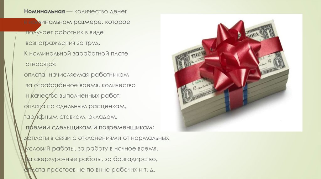 номинальной заработной плате. К примеру, номинальная заработная плата
