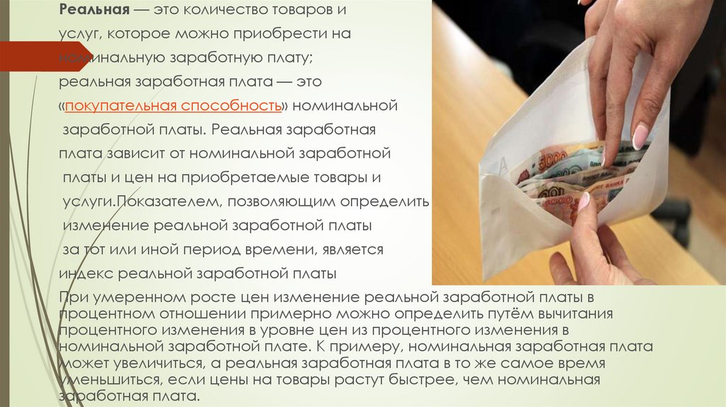 Реальная — это количество товаров иуслуг, которое можно приобрести на