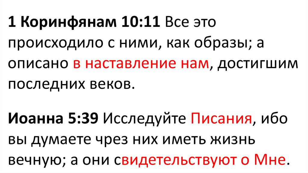 1 Коринфянам 10:11 Все этопроисходило с ними, как образы; а