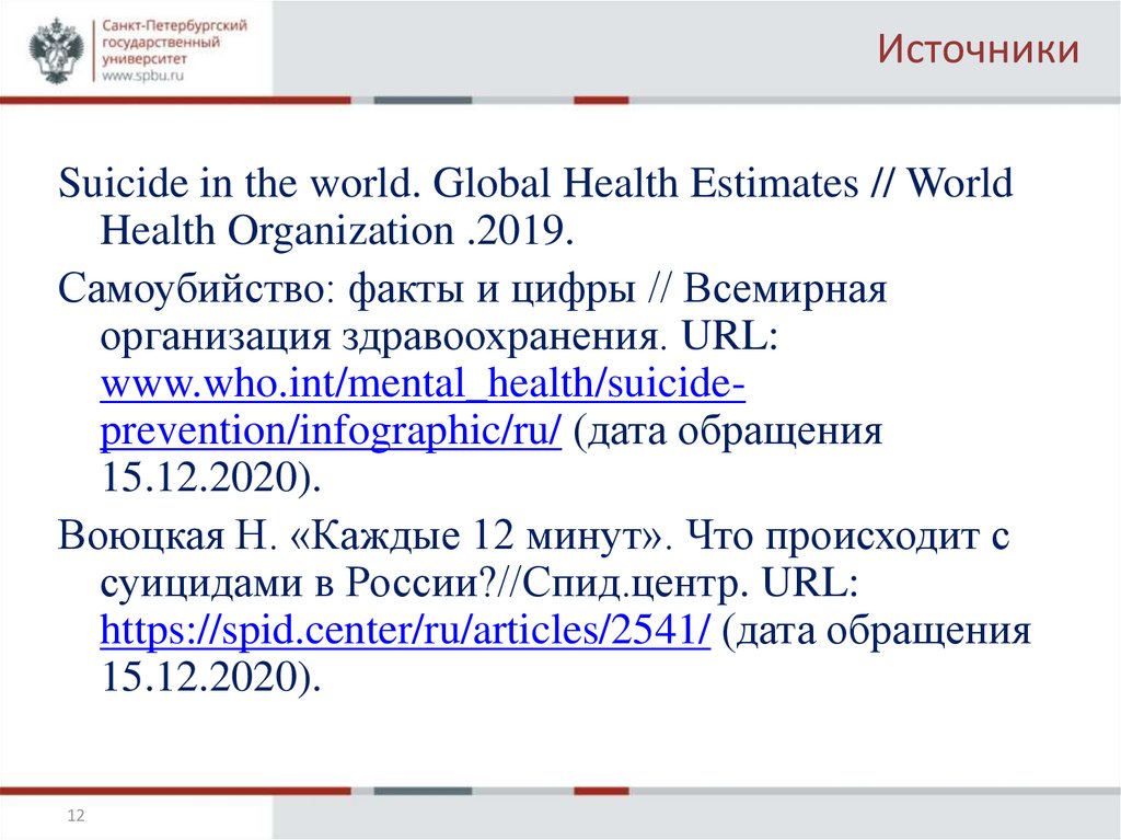 ИсточникиSuicide in the world. Global Health Estimates // World