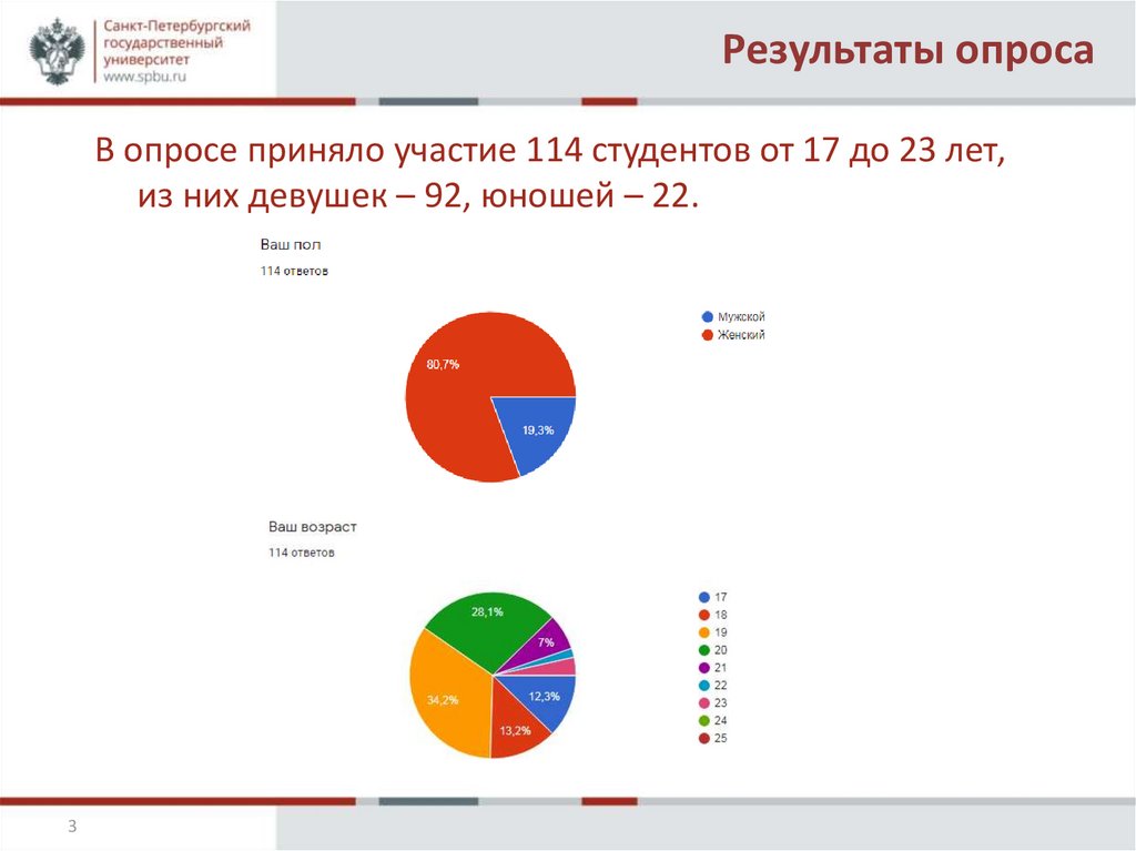 Результаты опросаВ опросе приняло участие 114 студентов от 17 до 23 лет,