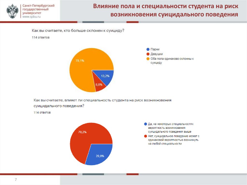 Влияние пола и специальности студента на рисквозникновения суицидального поведения