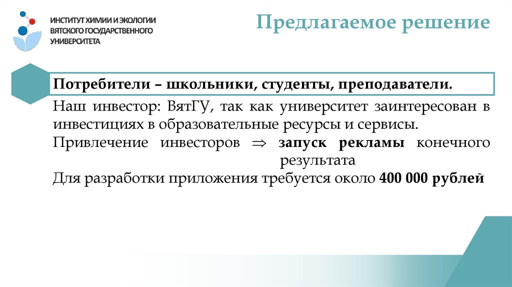 Наш инвестор: ВятГУ, так как университет заинтересован в