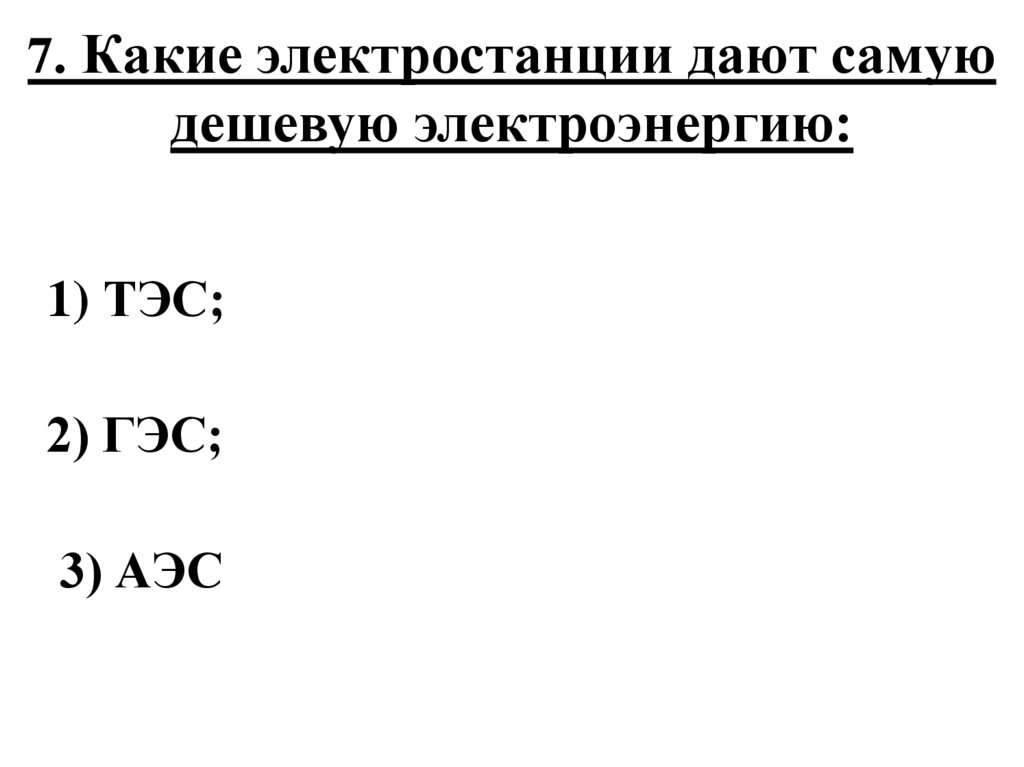 7. Какие электростанции дают самуюдешевую электроэнергию: