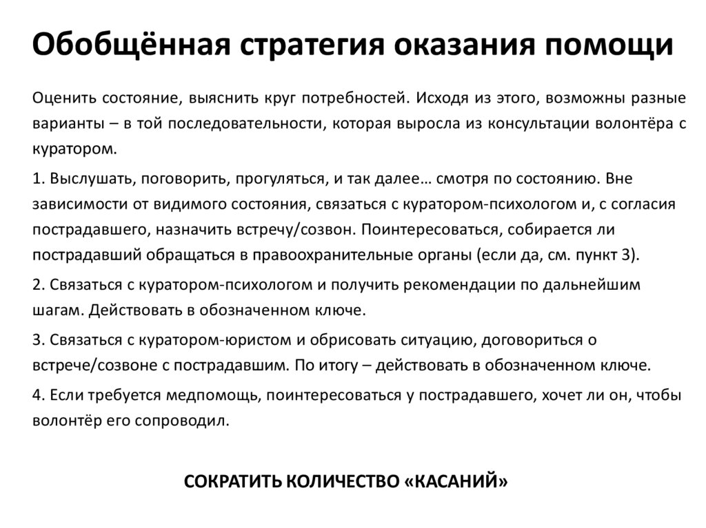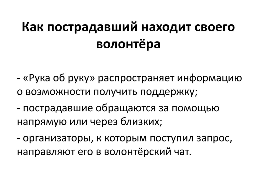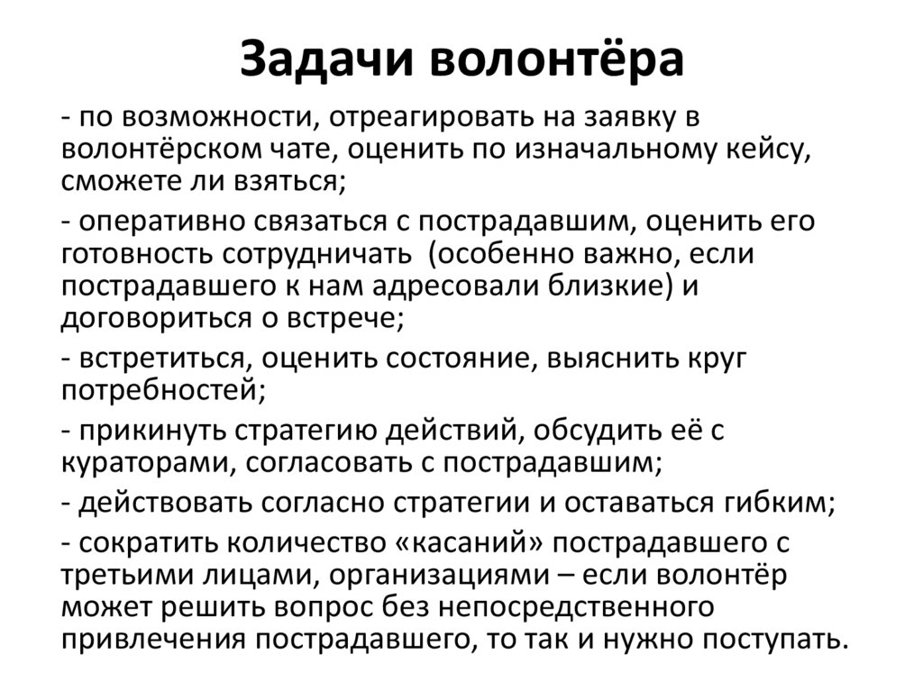 пострадавшим, согласовав с кураторами, посоветовавшись с другими волонтёрами.