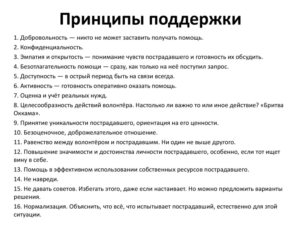Принципы поддержки1. Добровольность — никто не может заставить получать помощь.